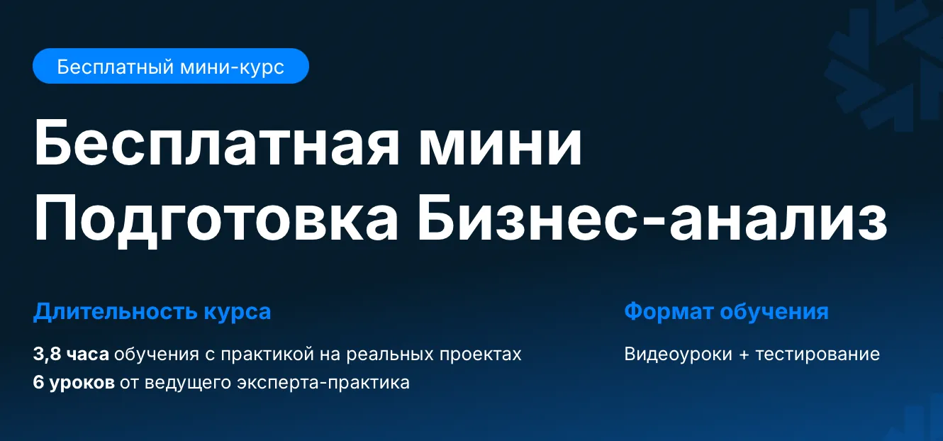 Бесплатный мини-курс "Что делает бизнес-аналитик" - это вводная часть большой программы обучения на курсе «Бизнес-аналитик».