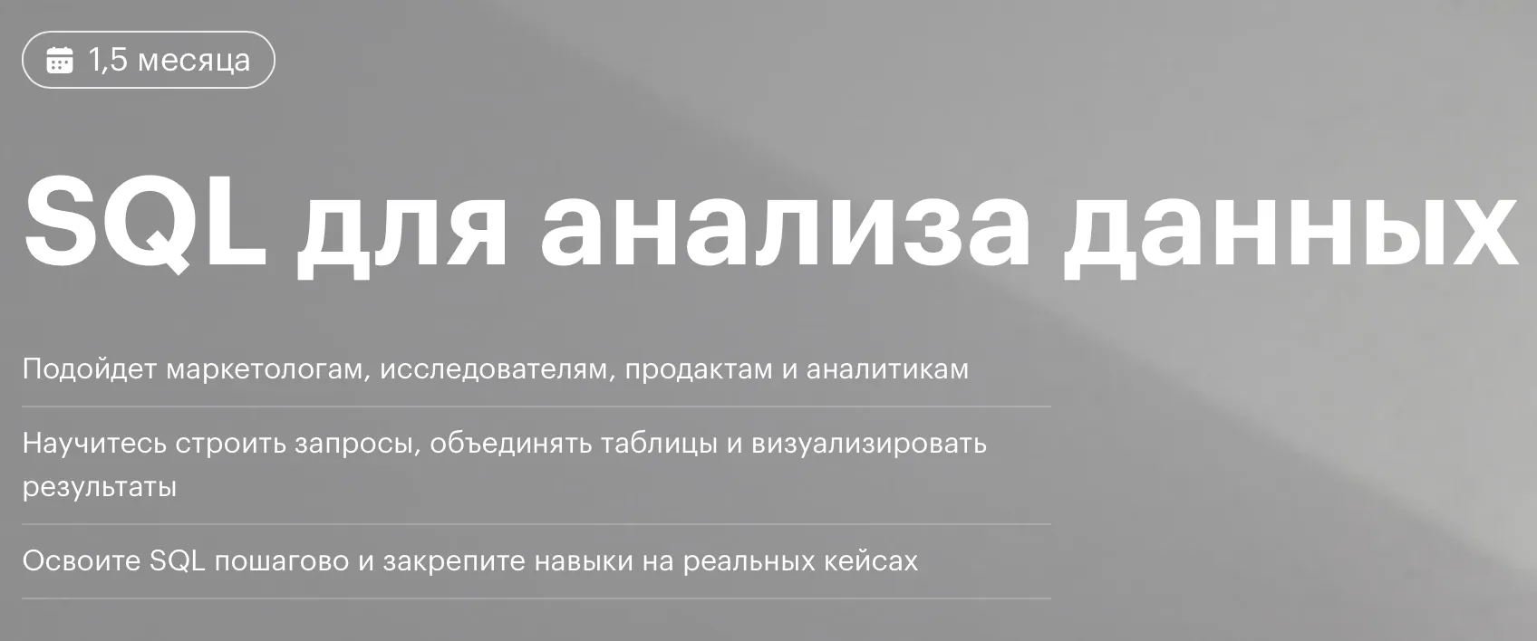 SQL для анализа данных - практический онлайн-курс от Product Star для специалистов, работающих с данными. За 1,5 месяца вы научитесь профессионально работать с базами данных и применять SQL для решения бизнес-задач.